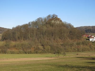 Les vestiges du Château Haselstein se dressent sur une colline escarpée de basalte à 434 mètres au-dessus du niveau de la mer.