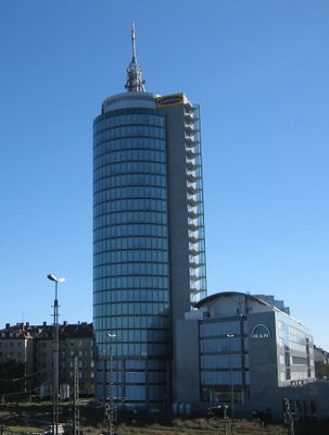 La Central Tower est un gratte-ciel de bureaux à Schwanthalerhöhe d'une hauteur de 85 mètres avec 23 étages. La structure en verre et acier crée une forme rectangulaire épurée qui se distingue dans le paysage urbain.