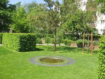 Le Comenius-Garten s'étend sur un espace urbain avec diverses espèces végétales, des zones éducatives et des points de rencontre au Richardstraße 35.