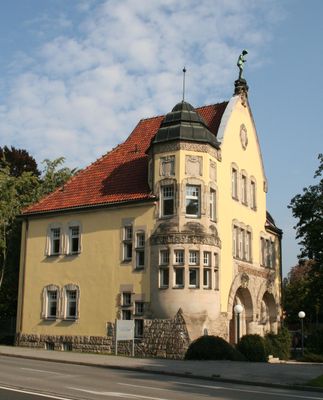 Le bâtiment d'entrée préservé au Alfred-Sauerteig-Anlage 1 abrite maintenant le bureau d'audit municipal. Vous pouvez voir la facade et les détails de l'entrée de l'extérieur.