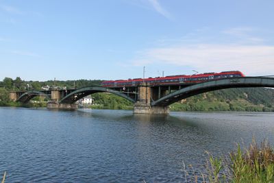 Le pont accueille des voies ferrées et un passage piéton, assurant une liaison essentielle pour le transport ferroviaire entre Coblence et Trèves.