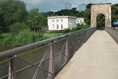 Pont suspendu sur la Fulda, Pont suspendu en acier à Kassel, Allemagne.