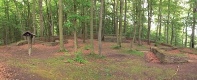 Le château Hünenburg Hohenrode se dresse sur un plateau aux pentes abruptes vers la rivière Weser, couvrant une surface ovale de 100 par 55 mètres.