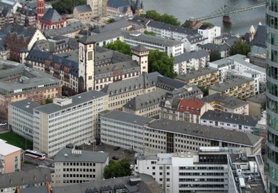 Le Bundesrechnungshof Frankfurt est un bâtiment administratif dans l'Altstadt de Francfort avec un plan en forme de Z, comprenant une section centrale de huit étages et deux ailes de cinq étages de chaque côté. La structure se distingue par ses 1100 fenêtres en verre coloré intégrées a la facade.
