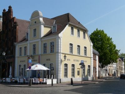 Le bâtiment se trouve au centre de la place du marché de Wismar et est facile d'accès à pied. Vous pouvez admirer son architecture depuis la rue, et la zone offre beaucoup d'espace pour se promener et explorer les rues voisines.