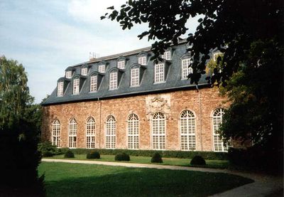 L'Orangerie est une construction en pierre Rogenstein locale, avec de grandes fenêtres conçues pour abriter des plantes subtropicales pendant les mois d'hiver.