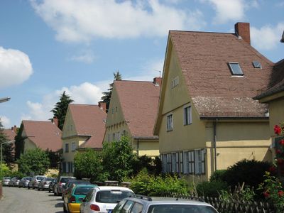 L'architecte Wolfgang Binder a conçu les maisons selon le concept de cité-jardin, intégrant des éléments du réalisme expressif dans les structures.