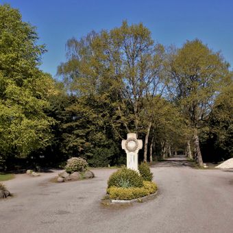 Le cimetière comprend un crématorium et présente de nombreuses pierres commémoratives documentant l'histoire de la population locale.