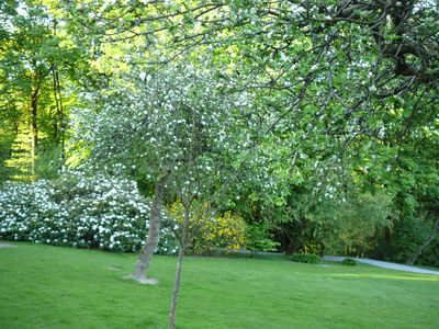 Le parc présente une collection importante de rhododendrons qui fleurissent en différentes couleurs au début de l'été, disposés près des étangs.