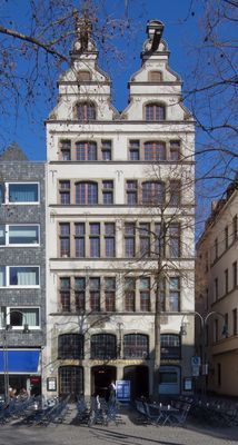 Le Gaffel Haus se situe au 20-22 Alter Markt, avec une galerie nommée Hängestube offrant 40 places assises au-dessus de l'entrée principale.