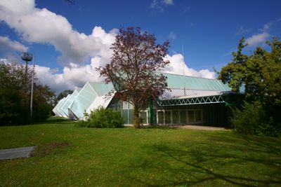 Cette salle sportive a ete l'un des premiers batiments construits en Allemagne en 1977 avec une structure de verre si vaste et est maintenant protegee comme monument architectural. Cette approche de conception en fait un exemple remarquable d'architecture moderne d'apres-guerre pour les espaces fonctionnels.