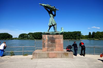 La statue se dresse sur un chemin public au bord du fleuve près de la cathédrale, ce qui la rend facile d'accès à pied. L'emplacement est accessible et offre une vue claire sur la sculpture et l'eau.