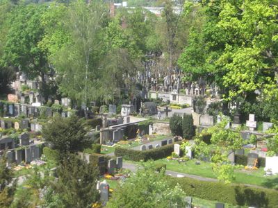 Le Hauptfriedhof s'étend sur des terrains paysagers avec des allées, des caveaux familiaux, des pierres tombales élaborées et des sculptures illustrant l'artisanat local.