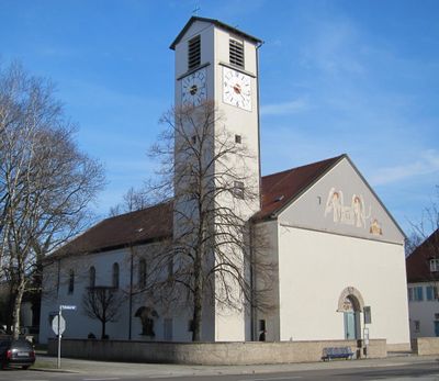 L'église présente des éléments architecturaux spécifiques représentant le style de construction religieuse des années 1930, associant design bavarois et influences modernes.