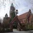 L'Église de la Sainte Famille présente des briques rouges peintes à la main avec une nef centrale, deux bas-côtés étroits et une tour de 43 mètres.