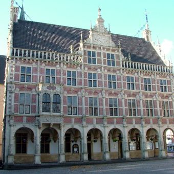Construit entre 1618 et 1621, l'hôtel de ville fut gravement endommagé pendant la Seconde Guerre mondiale et reconstruit de 1948 à 1955.