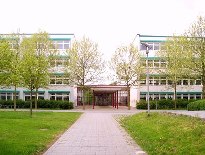 Le bâtiment scolaire est généralement accessible par l'entrée de la Jerusalem-Strasse et les visiteurs doivent convenir d'un rendez-vous à l'avance. L'atrium en verre offre une bonne orientation entre les différentes parties de l'école.