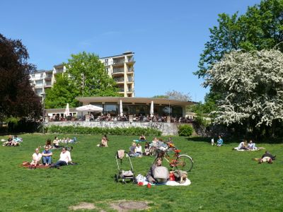 Le Volkspark am Weinbergsweg s'étend sur 4,3 hectares de terrain paysager avec des sentiers sinueux, des terrains de sport et plusieurs sections de jardin.