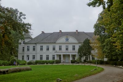 La propriete se situe pres du Fjord de Flensbourg, ou le batiment et le paysage creent une combinaison interessante d'architecture classique avec un terrain cotier nordique. Cette localisation montre comment les domaines aristocratiques etaient positionnes pour beneficier a la fois de la tradition architecturale et de l'environnement naturel.