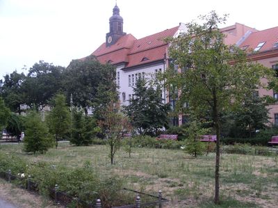 La place porte le nom de Christian Koppe, qui a établi un cimetière pour les pauvres en 1704. Elle a été transformée en parc public par Erwin Barth en 1927.