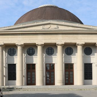 La Betonhalle présente une rotonde centrale recouverte d'une coupole en béton de 32 mètres de diamètre, soutenue par 16 colonnes.