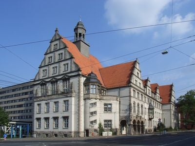 Le Landgericht Bielefeld est un tribunal régional situé au centre-ville qui fonctionne comme l'institution judiciaire principale du district. Le bâtiment affiche les caractéristiques typiques de l'architecture allemande de la fin du 19e siècle, avec une construction massive et une disposition formelle conçue pour les procédures publiques.