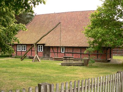 Le bâtiment principal, construit en 1653 et reconstruit au musée en 1982, représente le style architectural traditionnel des fermes du sud de la lande de Lunebourg.