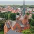 L'édifice religieux présente une architecture en briques rouges avec une tour intégrée de 40 mètres flanquée de tours d'escalier circulaires.