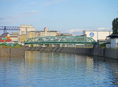 Schmickbruecke, Brücke über das Südbecken des Frankfurter Osthafens I in Frankfurt am Main-Ostend