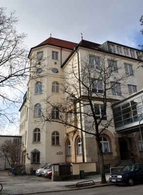 L'école a été fondée en 1911 au cours d'une période de construction active d'établissements scolaires à Munich et a été conçue comme un centre educatif moderne. Elle a conservé son rôle d'établissement educatif important et a ensuite été classée au titre du patrimoine pour préserver son architecture historique.