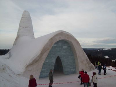 Des ingénieurs et architectes ont collaboré pour créer un squelette métallique soutenant des murs de neige et des fenêtres en blocs de glace.