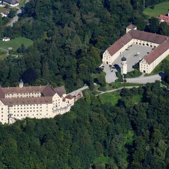 Le château est situé sur un plateau à 730 mètres d'altitude, offrant des vues sur le lac de Constance et les Alpes.