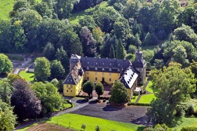 Schloss Melschede est un chateau d'eau a trois ailes dans la region de Sauerland entoure d'un parc paysager de 200 hectares. La structure comprend des zones residentielles, des salles formelles et une chapelle privee qui forment ensemble un ensemble de vie complet.