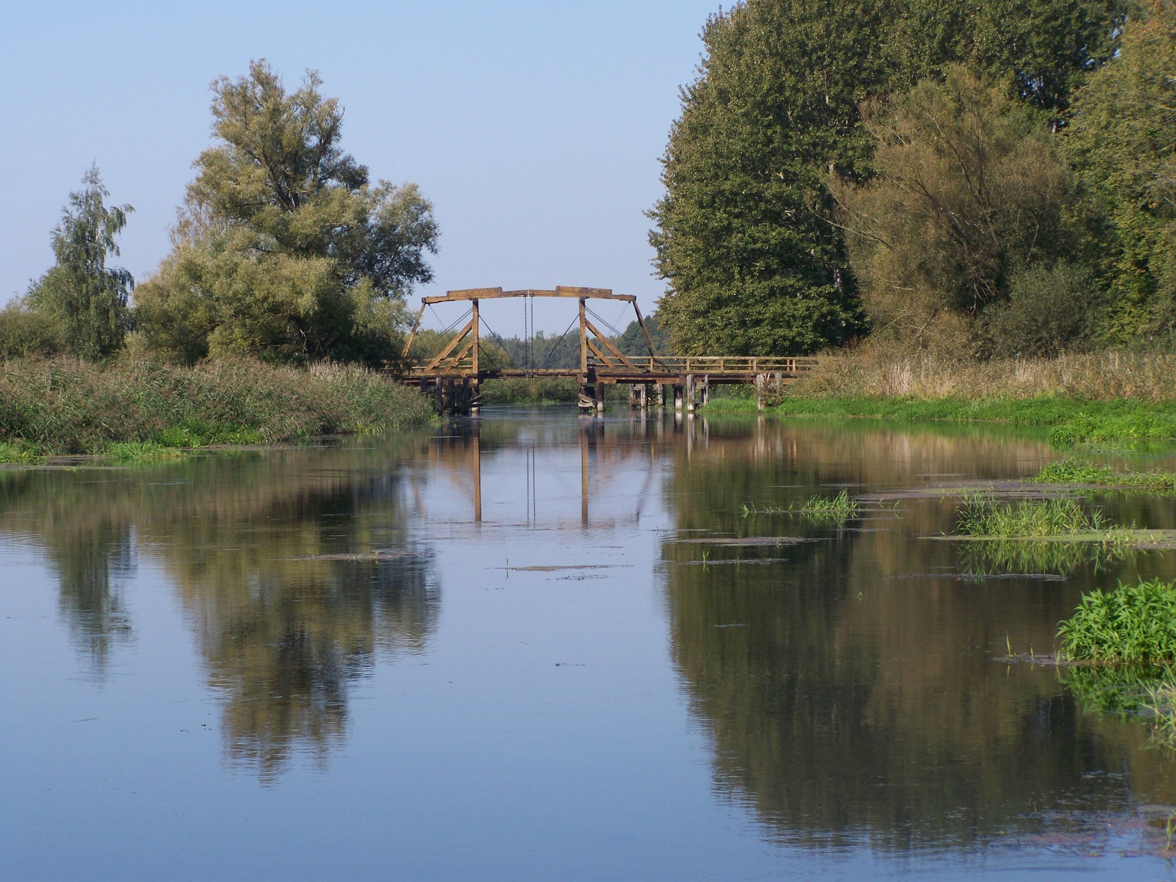 Klappbrücke Nehringen, Pont basculant en bois à Grammendorf, Allemagne.