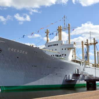 Le Dresden est un cargo de 157 metres transformé en musée avec accès à plusieurs espaces incluant les quartiers d'équipage et les zones de navigation. L'exposition s'étend sur plusieurs ponts et montre comment ces navires étaient équipés pour les routes commerciales internationales.