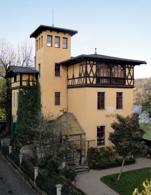 La villa restaurée fonctionne maintenant comme restaurant italien, proposant des services de restauration avec vue sur l'Elbe et les collines environnantes.