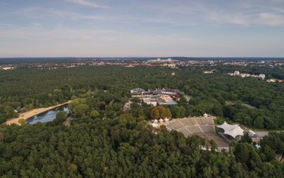 Le Volkspark Wuhlheide de 29 hectares abrite des arbres centenaires, des prairies, des aires de jeux, des terrains de sport et un bassin de pataugeoire.