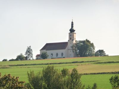 La Wallfahrtskirche Mariä Himmelfahrt est une église à nef unique avec un plafond courbe orné de stuc et de peinture, créant un espace intérieur ouvert et lumineux. Un clocher distinctif surmonté d'un dôme en forme d'oignon marque l'horizon et est visible depuis tout le village.