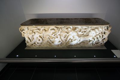 Créé vers 250 après J-C, ce sarcophage romain représente les pratiques funéraires de l'époque par sa taille, le choix du matériau et ses sculptures en relief narratives.