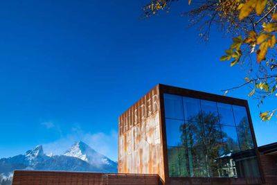 Le batiment dispose d'une fenetre speciale avec des lames ajustables qui encadrent la vue du pic Watzmann directement dans les expositions. Cette conception reflexive lie les expositions interieures directement au paysage montagneux reel de l'exterieur.