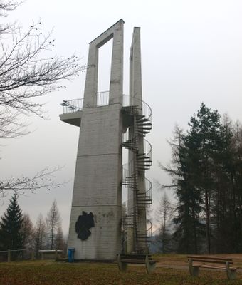 La tour d'observation en béton s'élève à 16,8 mètres de hauteur, offrant des vues sur le bassin de Gerstunger et la vallée de la Werra.