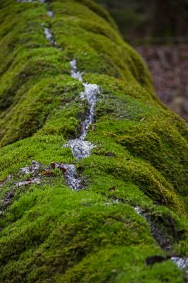 La Steinerne Rinne près d'Erasbach est un long canal étroit creusé dans la pierre de tuf près de Berching. La formation s'étend sur environ 100 mètres de long avec une largeur d'environ 1 mètre, affichant la texture poreuse et la couleur pâle typiques du tuf volcanique.