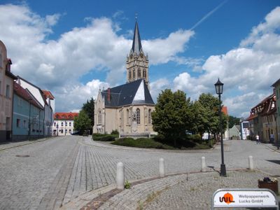 Dorfkirche Ramsdorf: Kirche (mit Ausstattung) und Grabstein an der Kirche Dorfstraße -