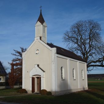 L'église actuelle en pierre a remplacé deux chapelles en bois en 1871, après la découverte d'une image sacrée intégrée dans un chêne en 1803.