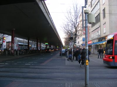 La conception de la rue reflète les principes d'urbanisme allemands des années 1960, période où les routes surélevées représentaient des solutions de transport.
