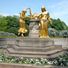 Le Monument à Mozart présente trois statues féminines dorées disposées autour d'un bassin d'eau circulaire, chacune exprimant différents états émotionnels par ses positions corporelles. L'œuvre repose sur un socle de pierre entouré de chemins pavés qui la rendent accessible depuis plusieurs côtés du parc.