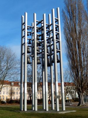 Les cloches originales ont été détruites lors d'un bombardement en avril 1945, et cette réplique a été installée en 1991, offerte par la communauté d'Iserlohn.
