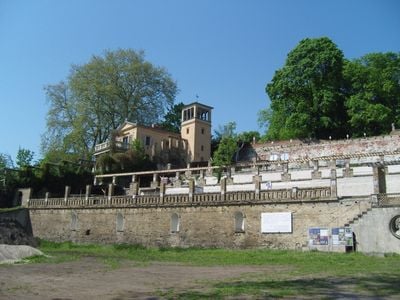 La structure en terrasses comprend un arc de triomphe conçu par Friedrich August Stüler, construit entre 1850 et 1851 comme entrée principale.