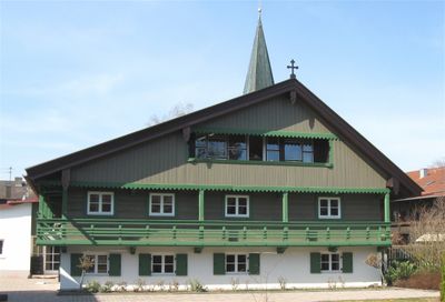 Wohnteil des ehemaligen Bauernhauses, sogenannt Beim Markl, bâtiment de Taufkirchen, Haute-Bavière, Allemagne