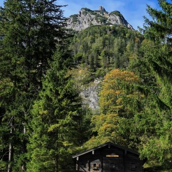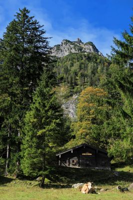 Engertalm, engerthütte; Blockbau, um 1900; südwestlich von Ramsau am Hirschbichl, 900–1250 m Höhe